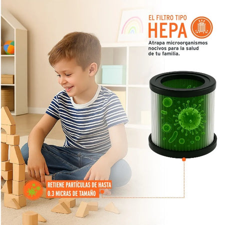• Filtro tipo HEPA lavable: ideal para alérgenos, polvo fino,pelo de mascota