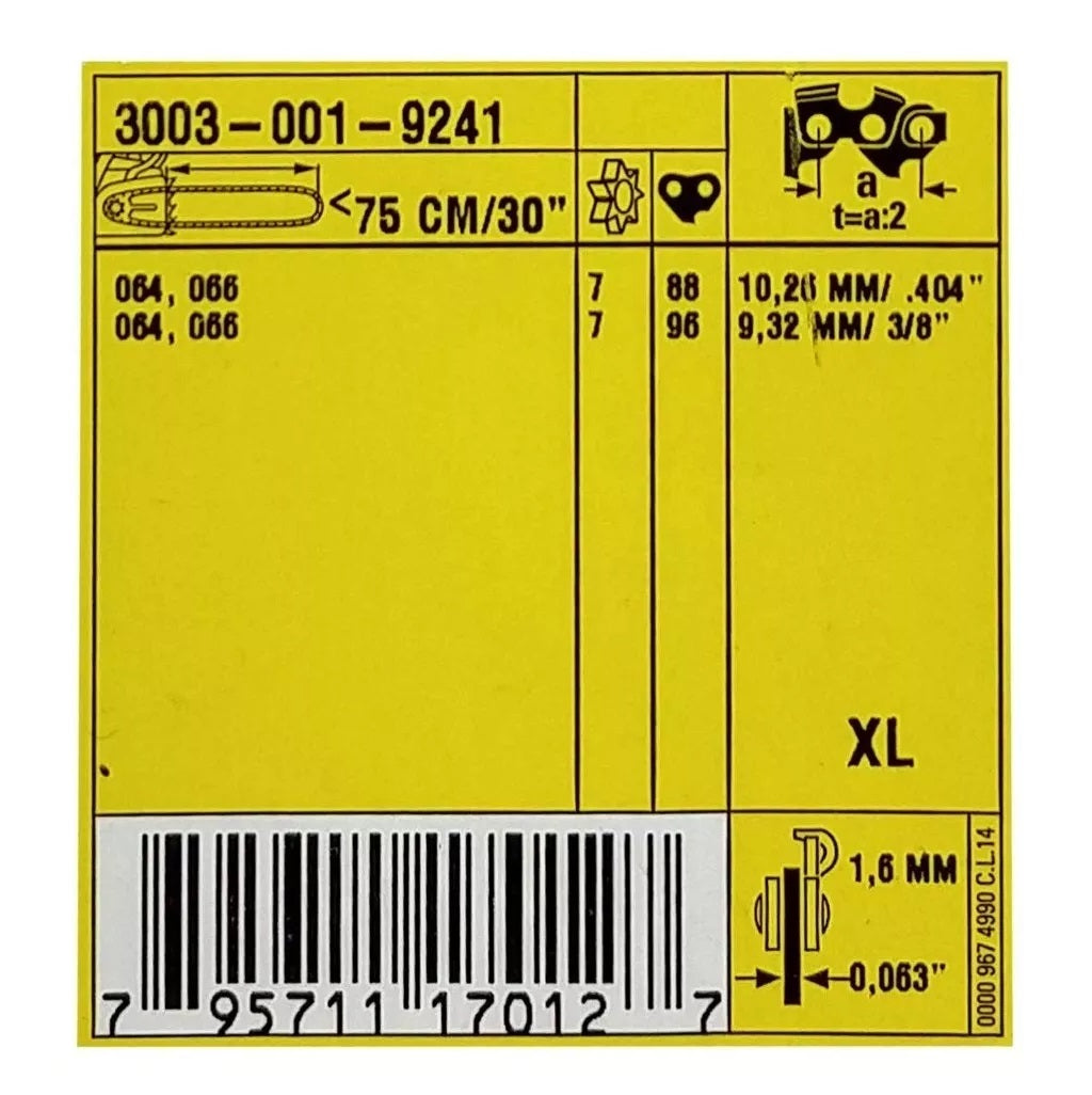BARRA GUÍA D 75CM/30' 1,6MM/0.063', 3003-001-9241 STIHL