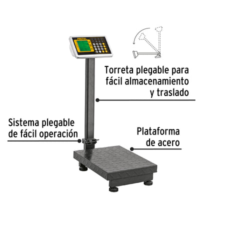 Báscula electrónica de plataforma, plegable, 100 kg. Pretul