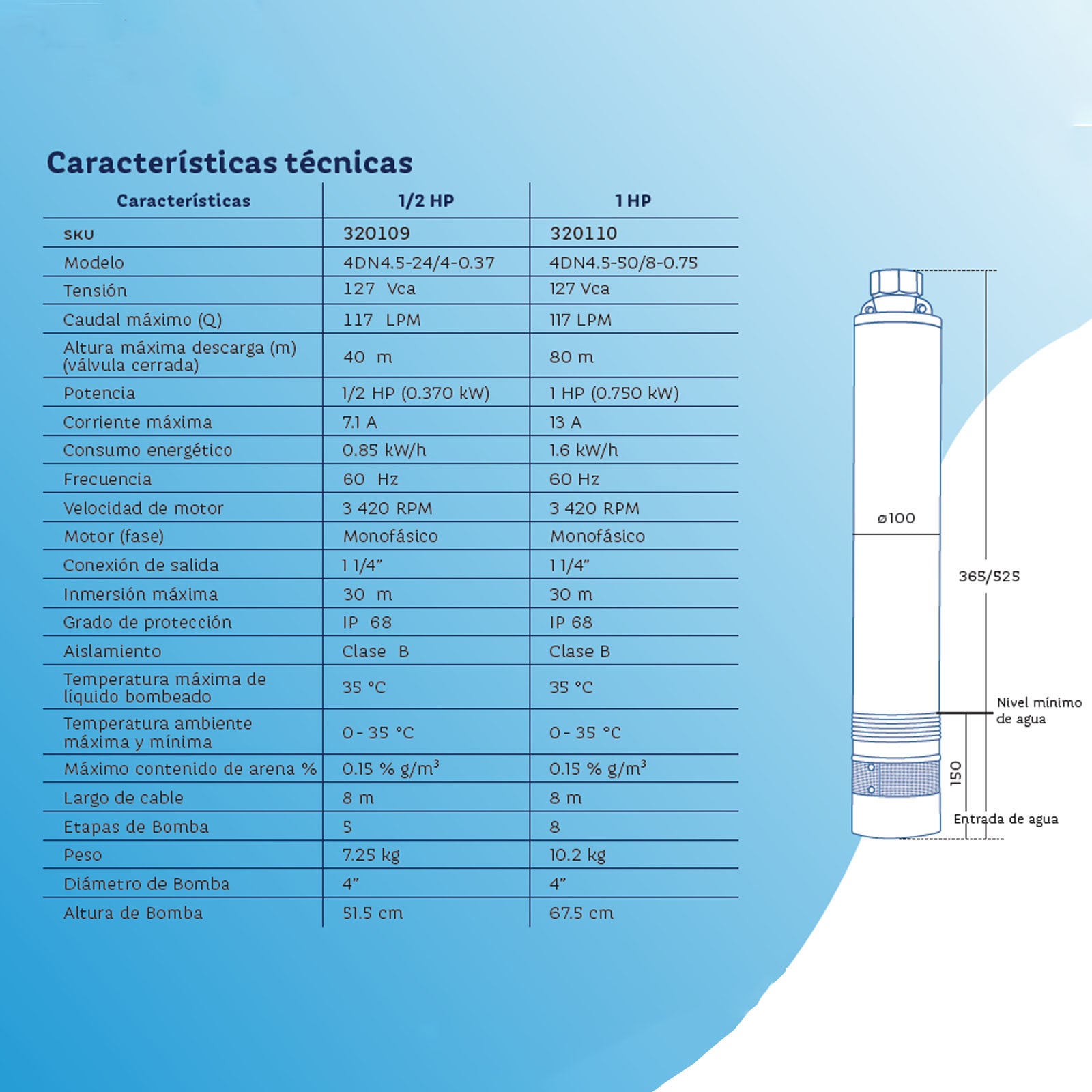 Bomba Sumergible para cisternas 1/2 HP Rotoplas