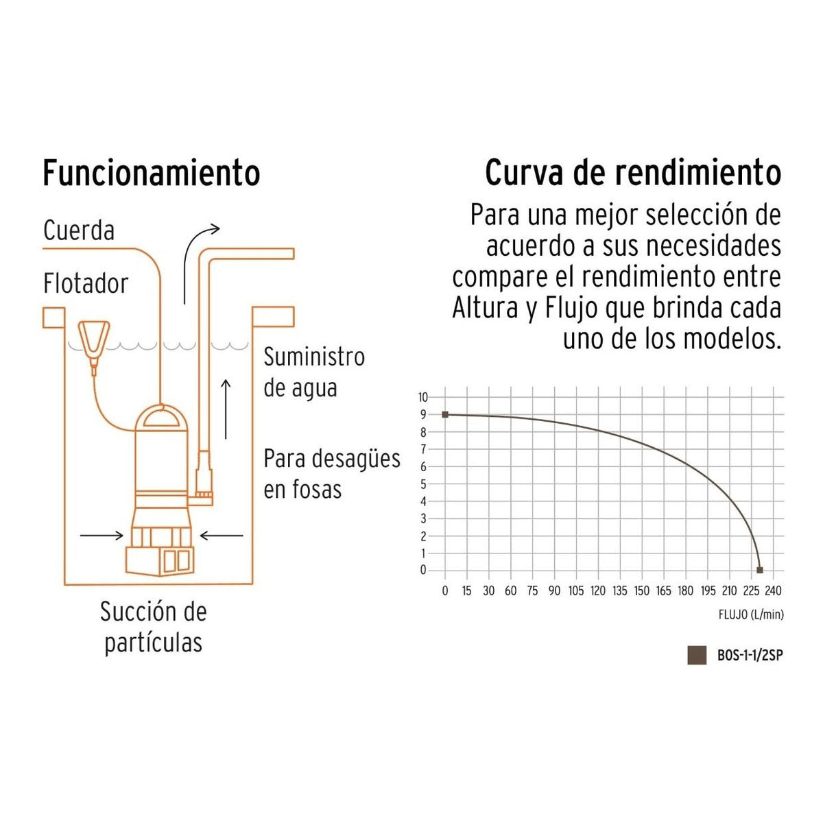 -Diseñada para uso doméstico e industrial como en fosas, pozos, minas y drenaje (para partículas hasta de 34 mm)
