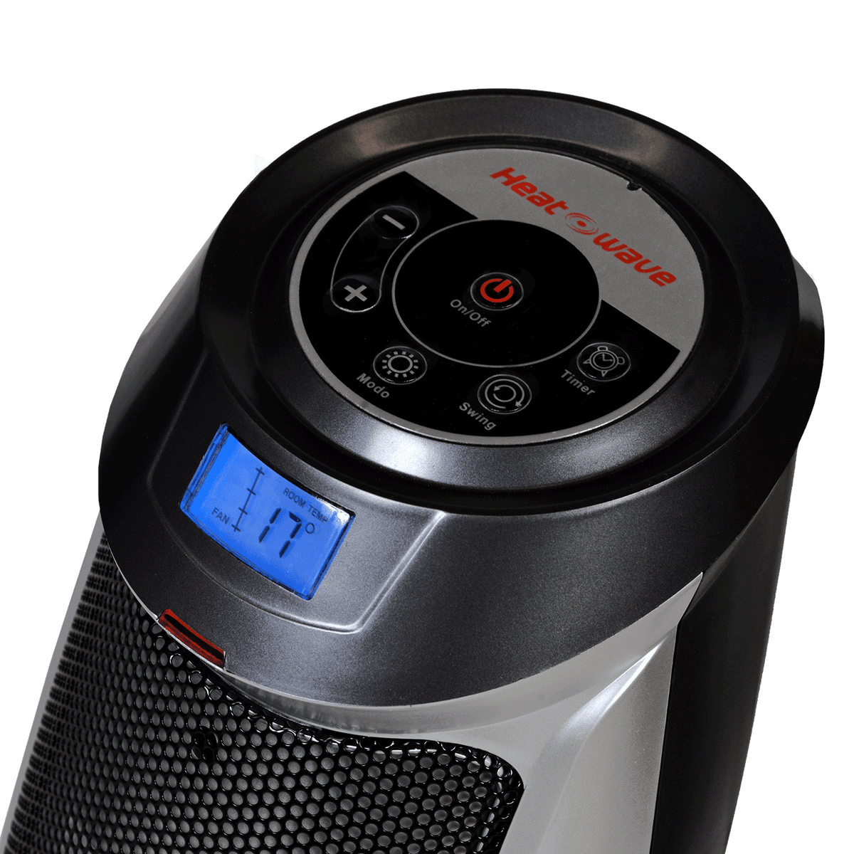 Con el Calefactor Eléctrico de Cerámica Tipo Torre, puedes llevar la calidez a cualquier habitación y disfrutar del rico calorcito, incluso en los días más fríos. Gracias a su diseño compacto, no necesita instalación especial, no ocupa tanto espacio y distribuye el calor de manera eficiente. Por si esto fuera poco, cuenta con un ventilador oscilatorio de gran potencia que puedes aprovechar durante el verano; incluye control remoto, pantalla LCD, timer de hasta 8 horas e indicador de temperatura ambiental. ¡Disfruta el calor de hogar con el Calefactor Eléctrico de Cerámica Tipo Torre de Heatwave!