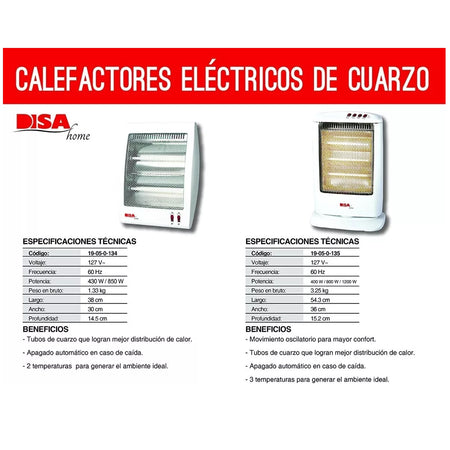Calefactor Eléctrico de Cuarzo 3 Niveles TAN-99Q DISA