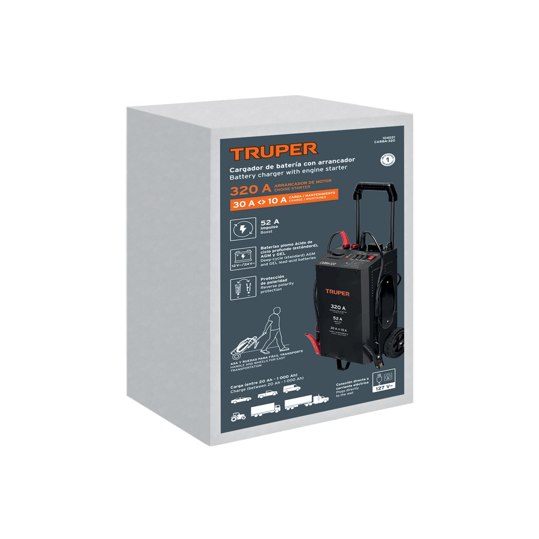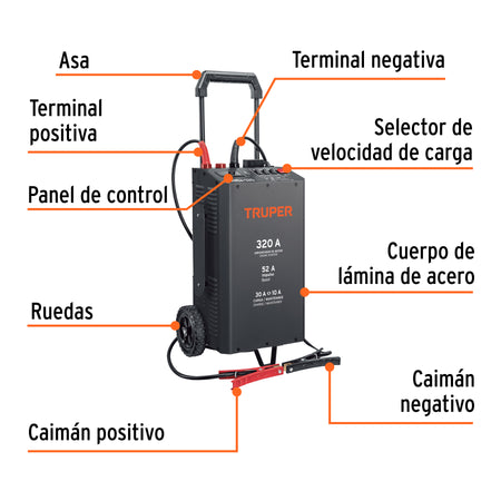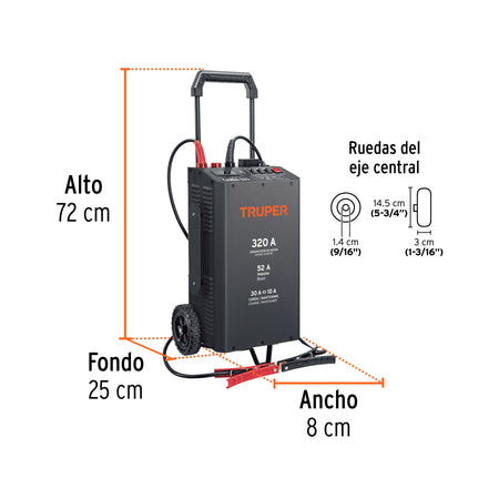Cargador de baterias 320 A con arrancador, 12V y 24V, TRUPER