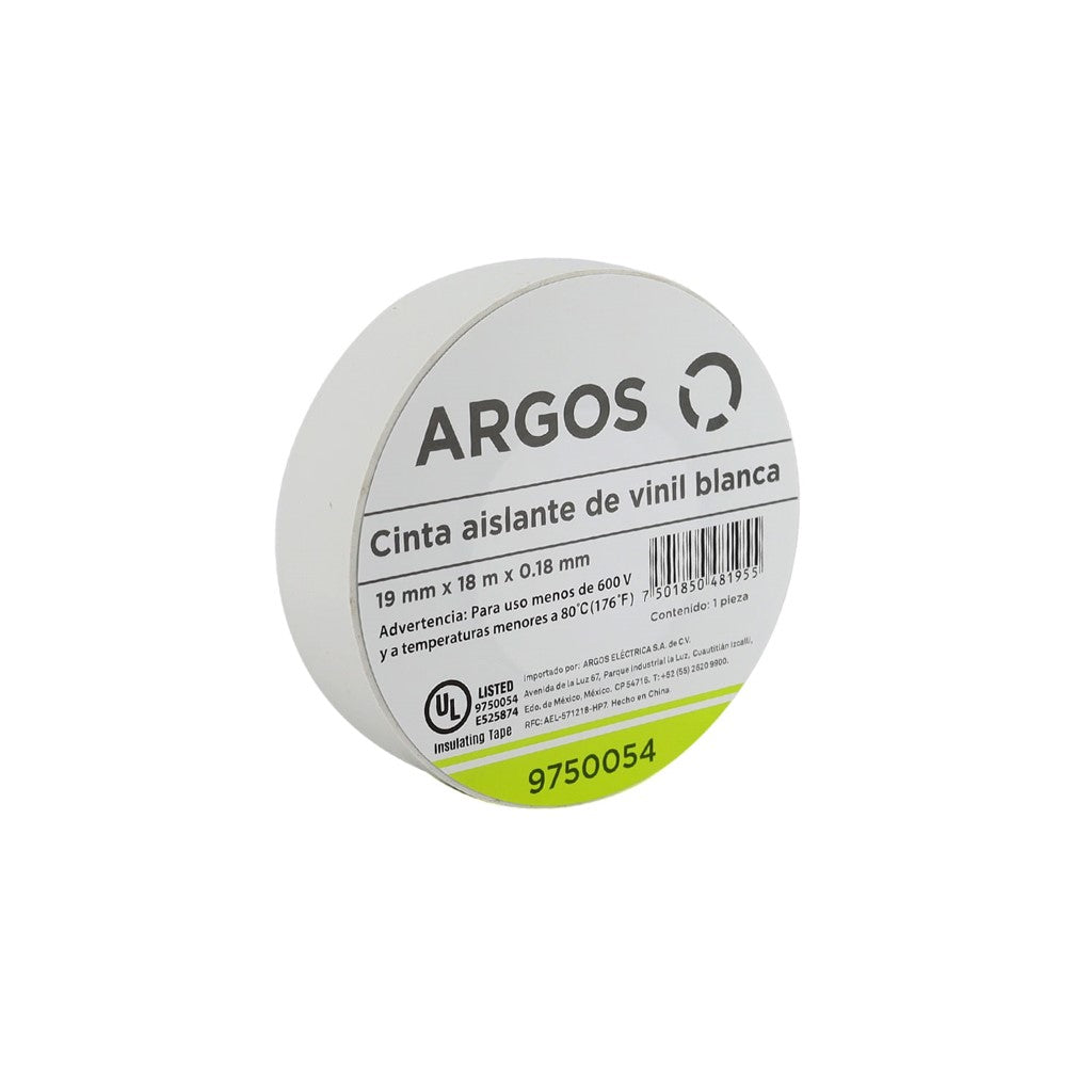 CINTA BLANCA ISLANTE DE VINIL 19 mm X 18 m, 9750054, ARGOS