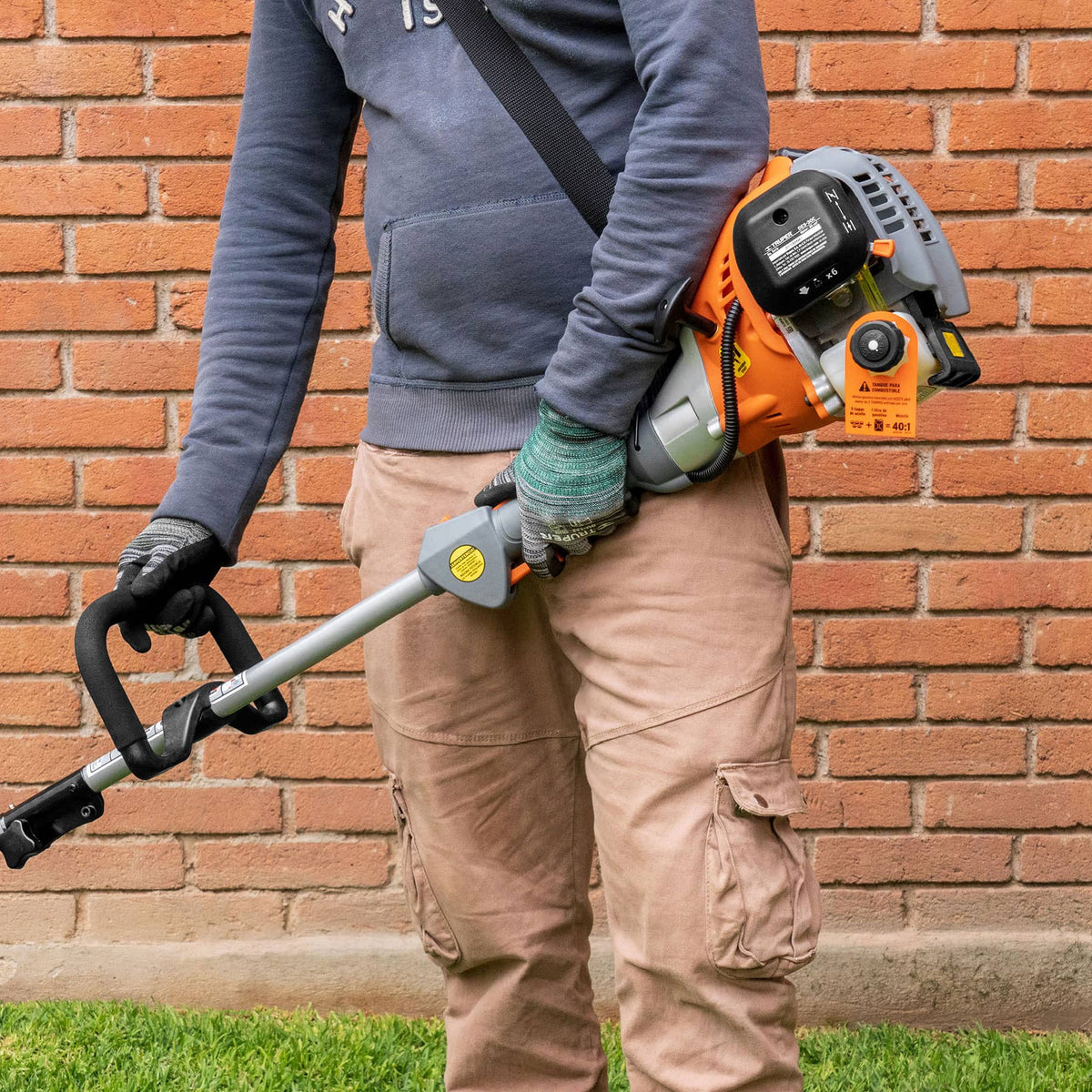 - La herramienta tiene un motor de 2 tiempos enfriado por aire que utiliza una mezcla de gasolina sin plomo y aceite automezclante de alta calidad