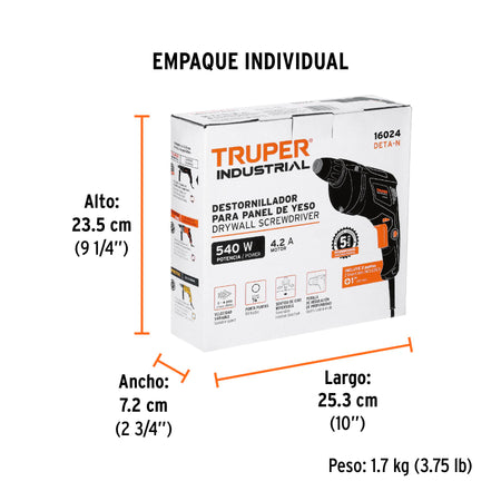Destornillador para panel de yeso 540W, TRUPER INDUSTRIAL