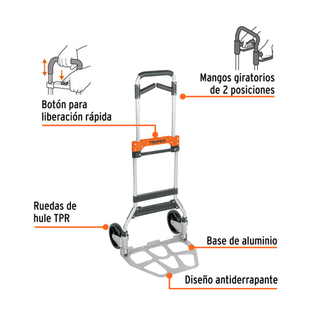 DIABLO DE CARGA, PLEGABLE, MANGO ABATIBLE, 170 KG