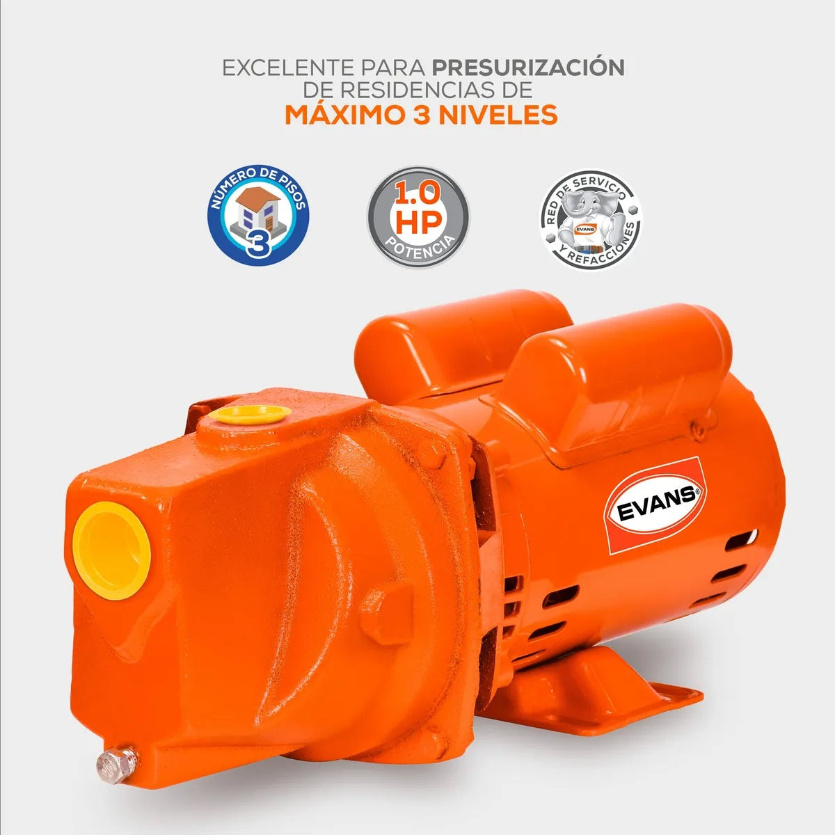 La bomba Bomba Jet Evans 1 De Hierro Gris 1.25”x1” Es la solución ideal para garantizar un flujo constante y potente en tus sistemas de agua. Con una potencia de 1 HP y 3450 RPM, este motor monofásico ofrece un rendimiento confiable tanto en 127V como en 220V,