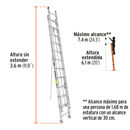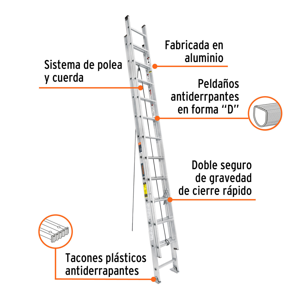 Accede a sitios inalcanzables de manera práctica. Transpórtala y adáptala a tus necesidades ¡Ya no hay límites! Asegura su posición sobre puntos sólidos y estables, y comienza a utilizarla.