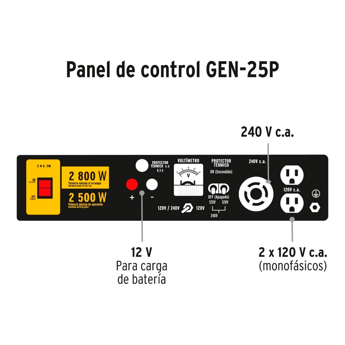 15 L de capacidad del tanque de gasolina para 6 horas de trabajo continuo