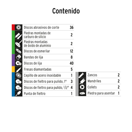 - Ideal para detalles de grabado, corte, desbaste, afilado, limpieza y pulido