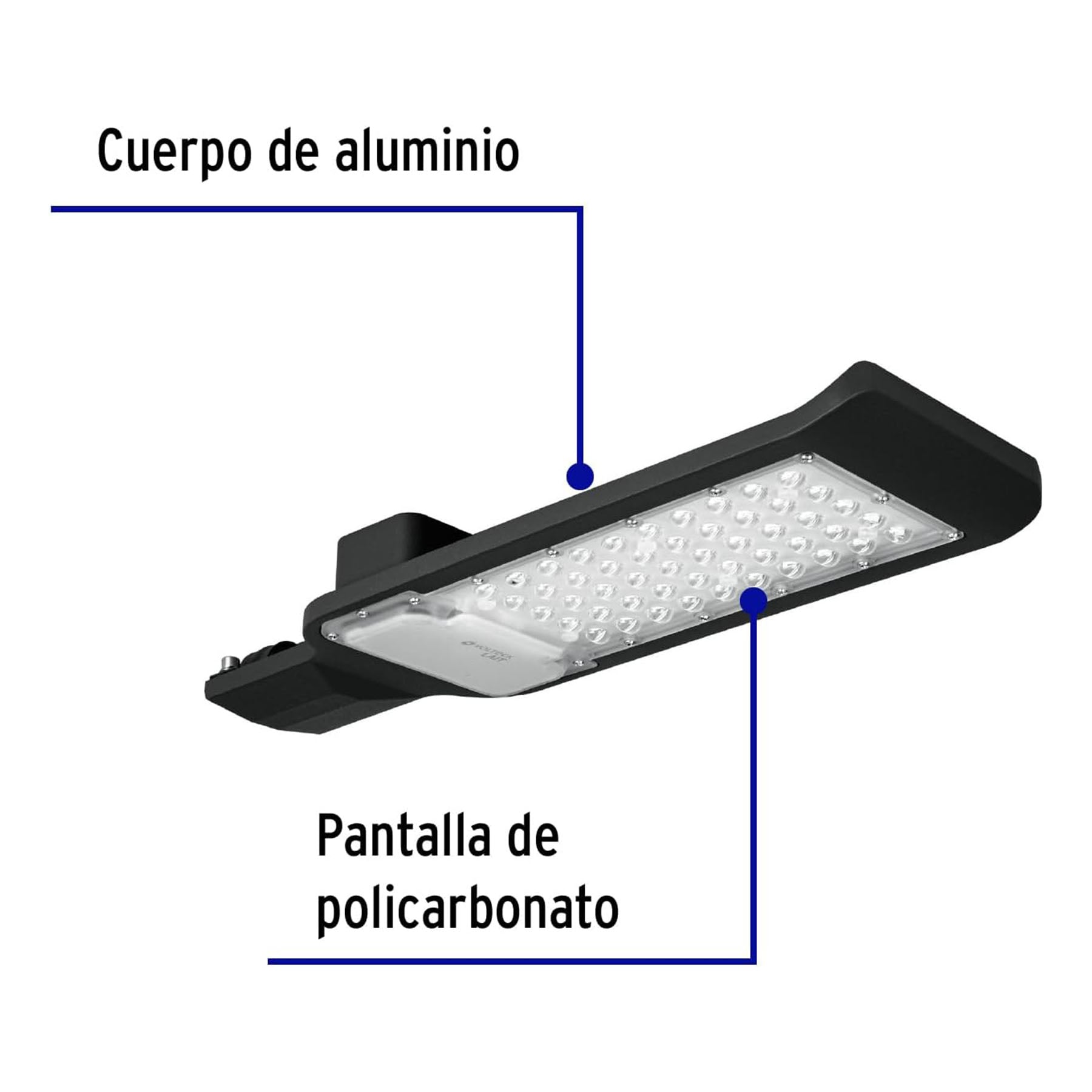 • Cuerpo de aluminio y pantalla de policarbonato resistente a la intemperie