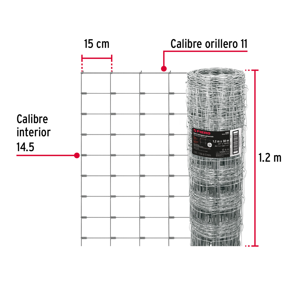 Malla Borreguera Ganadera 1.2m x 50m Acero Galvanizado