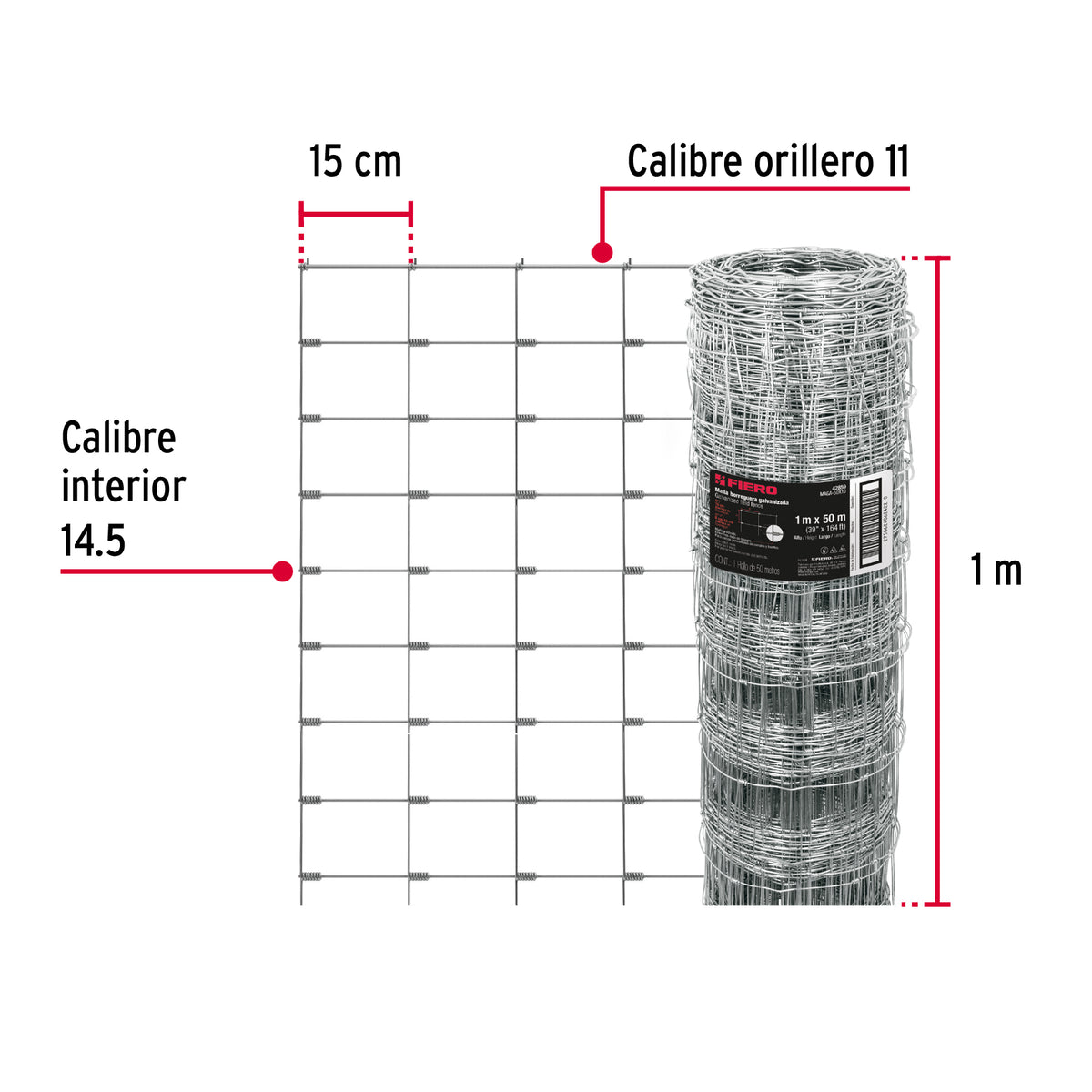 Malla Borreguera Ganadera 1m x 50m Acero Galvanizado 23 kg