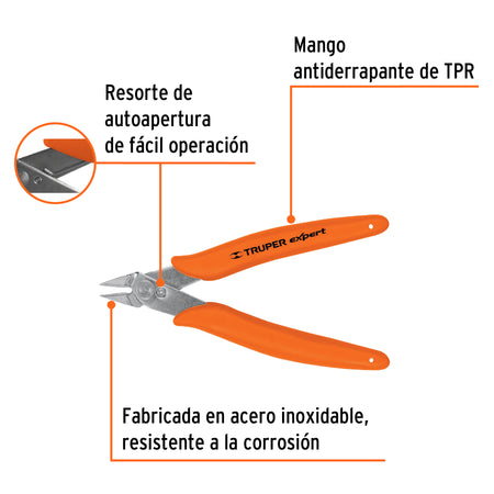 Pinza 5' de corte para electrónica, Truper Expert