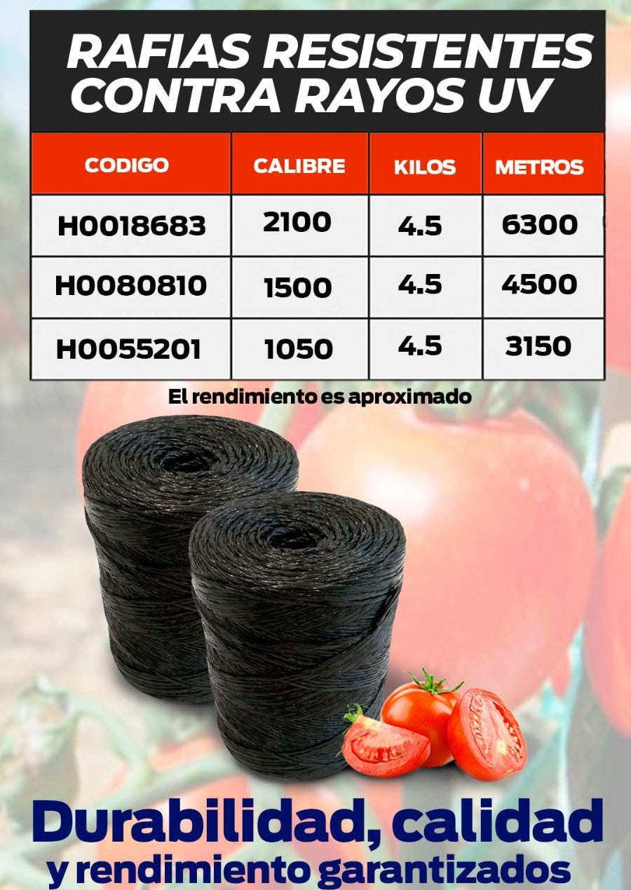Rafia Tomatera Negra 6300 metros Calibre 2100 Marca JYC