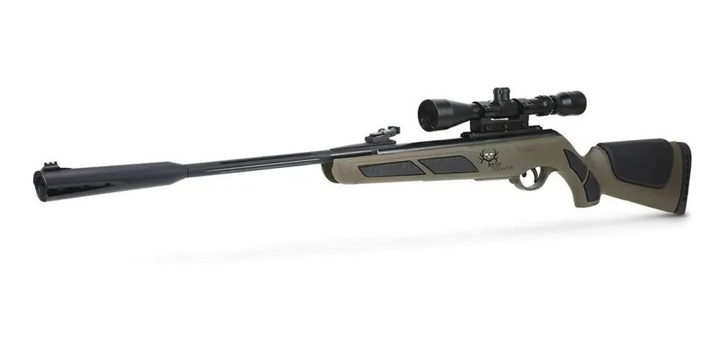 Rifle Deportivo Gamo Bone Collector Con Mira 5.5mm CaceríaEl rifle gamo calibre 5.5 mm Bone Collector de alta potencia para cacería es capaz de darle un alcance de tiro efectivo a 60 metros de distancia del objetivo. Cuenta con material sintético de alta calidad. Utiliza un resorte de 35 vueltas que impulsa la munición hasta 950fps.CARACTERÍSTICAS• Tipo de arma: Rifle• Material de la culata: Polímero• Sistema: Resorte• Accesorios incluidos: 1 mira• Diámetro del objetivo de la mira: 40 mm• Calibre: 5.5mm (.22)• Velocidad: 950 FPS.• 24 Joules• Rifle de aire con cañón de acero y mecanismo de resorte.• Para uso con diábolos.• Cuenta con sistema Gamo ND52 que reduce el ruido del cañón hasta un 52%.• Culata de polímero verde con incrustaciones de goma en color gris. Sintético duradero para todo clima con apretones de goma gris oscuro.• Almohadillas gemelas para disparos ambidiestros.• Contiene seguro de gatillo manual.INCLUYE• 1 rifle Deportivo Gamo Bone Collector Con Mira 5.5 mm Cacería• 1 mira Telescópica Gamo 3-9x40• Garantía de un año• InstructivoFACTURAMOS SU COMPRA. TORKE ¡¡Trabaja Contigo!!Facturación: Al momento de realizar su compra favor de mandar sus datos fiscales.Nuestra factura incluye IVA dependiendo del producto.