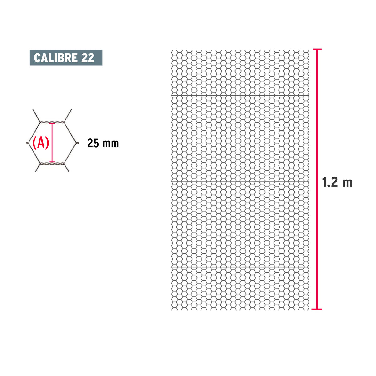 Rollo malla hexagonal cal.22, 1.2x 45m, abertura 25mm, 16kg