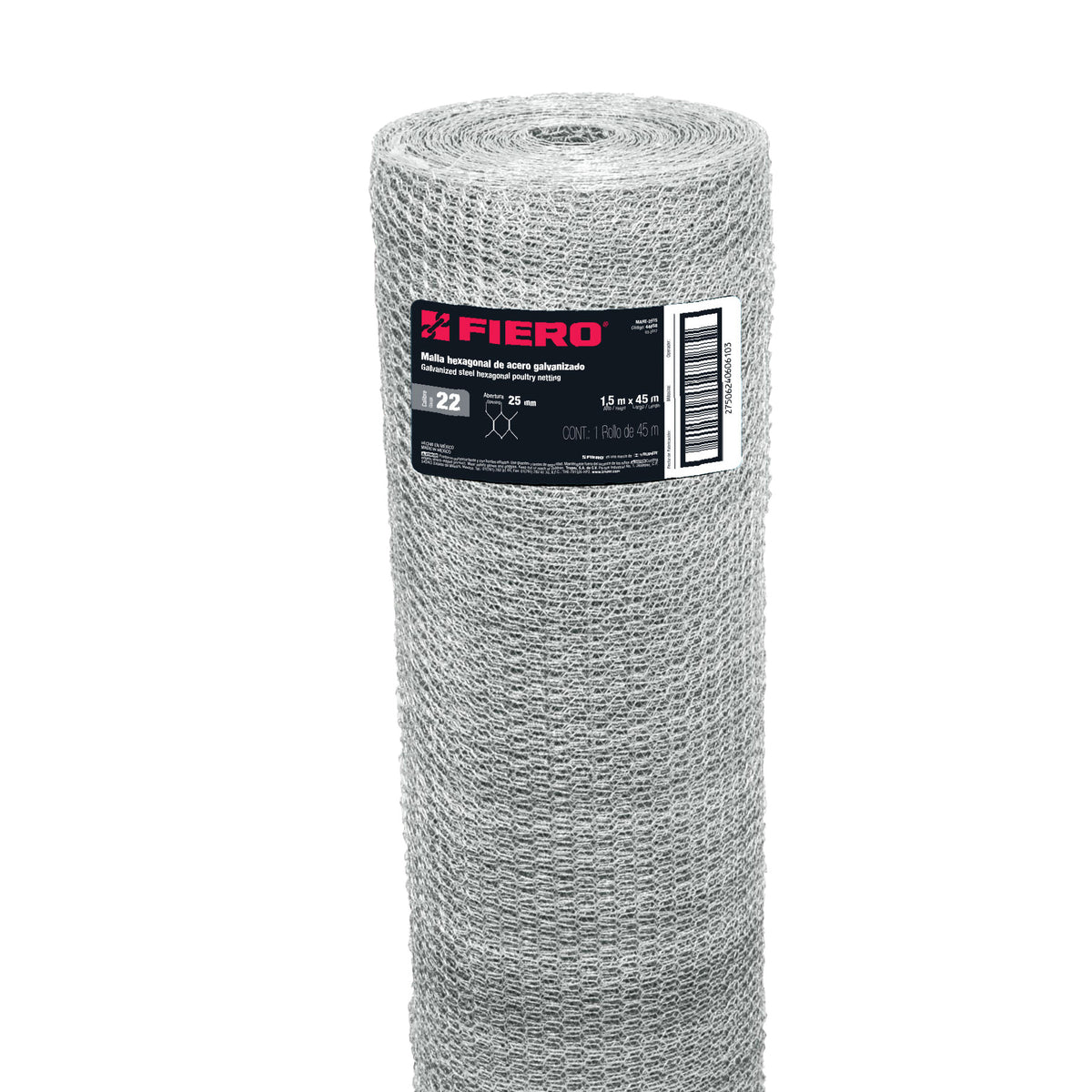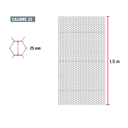 Rollo malla hexagonal cal.22, 1.5x 45m, abertura 25mm, 20kg