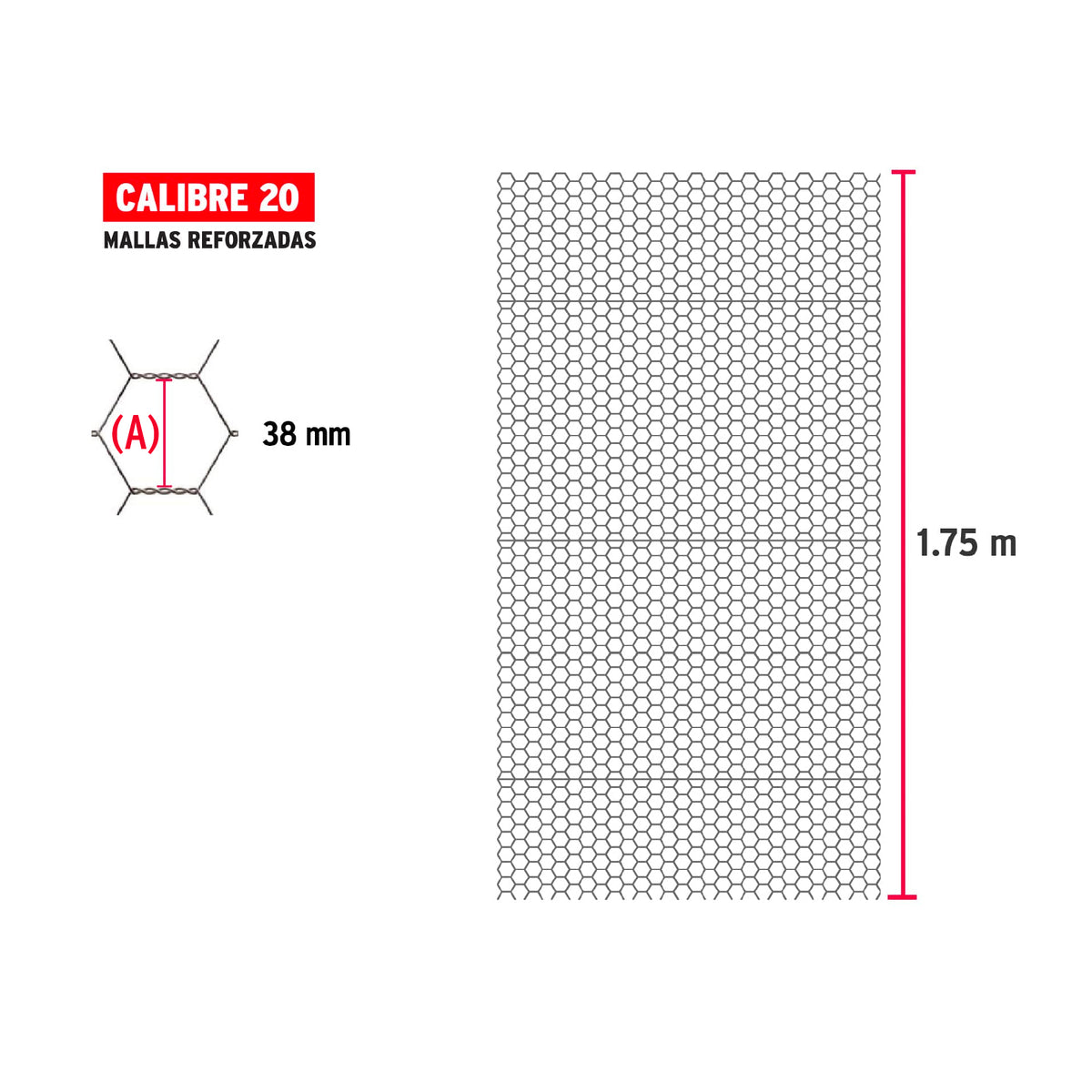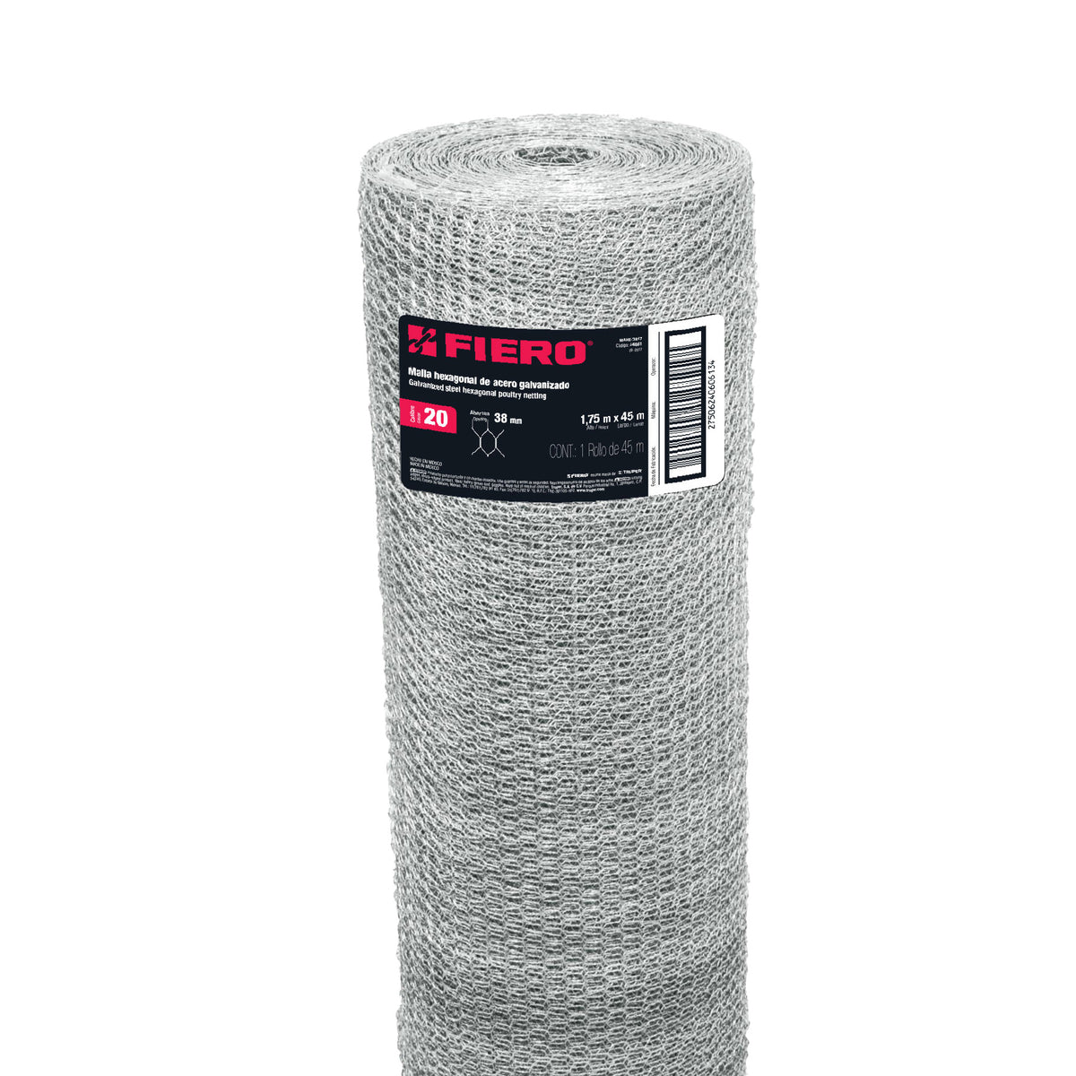 Rollo malla hexagonal cal.20, 1.75x 45m, abertura 38mm, 21kg