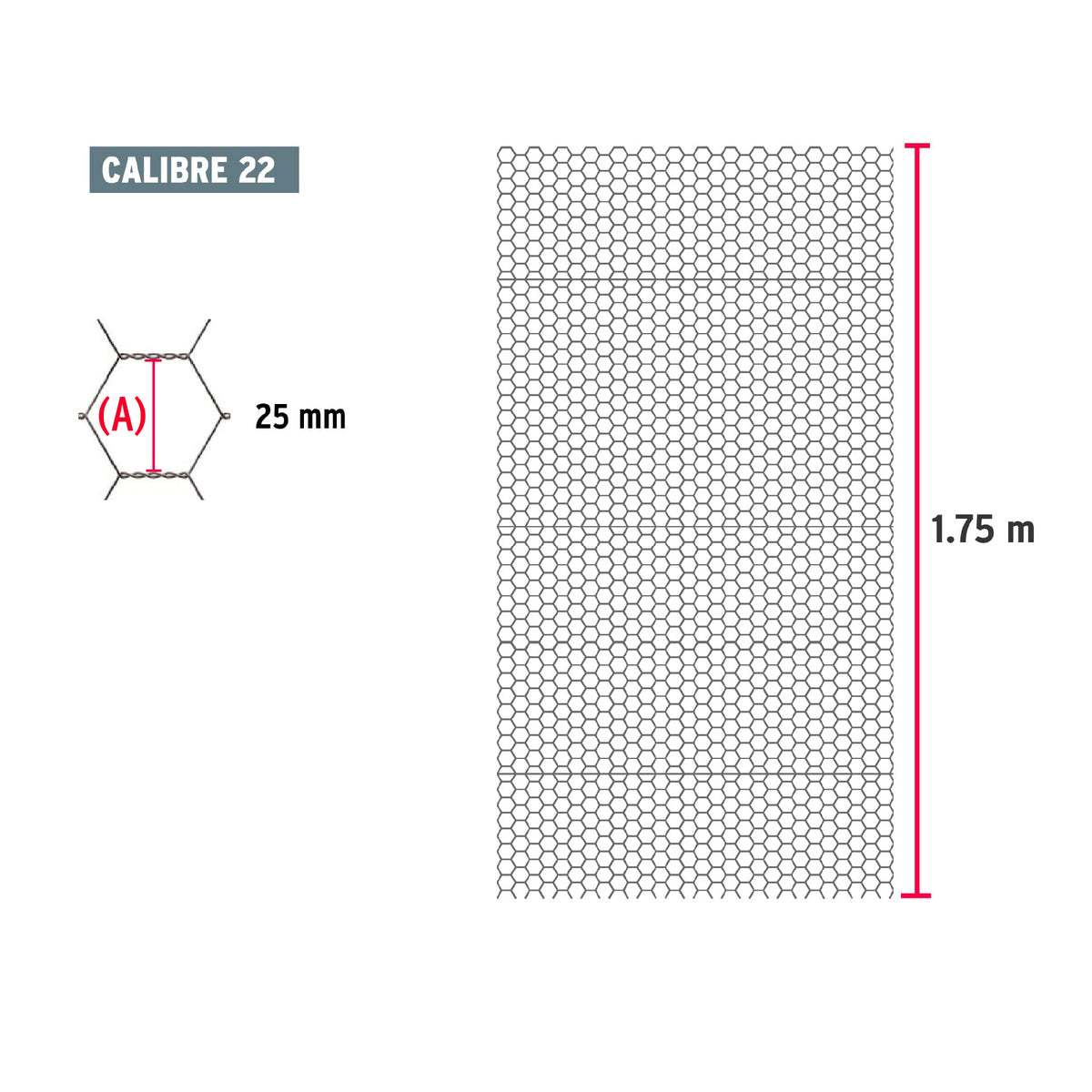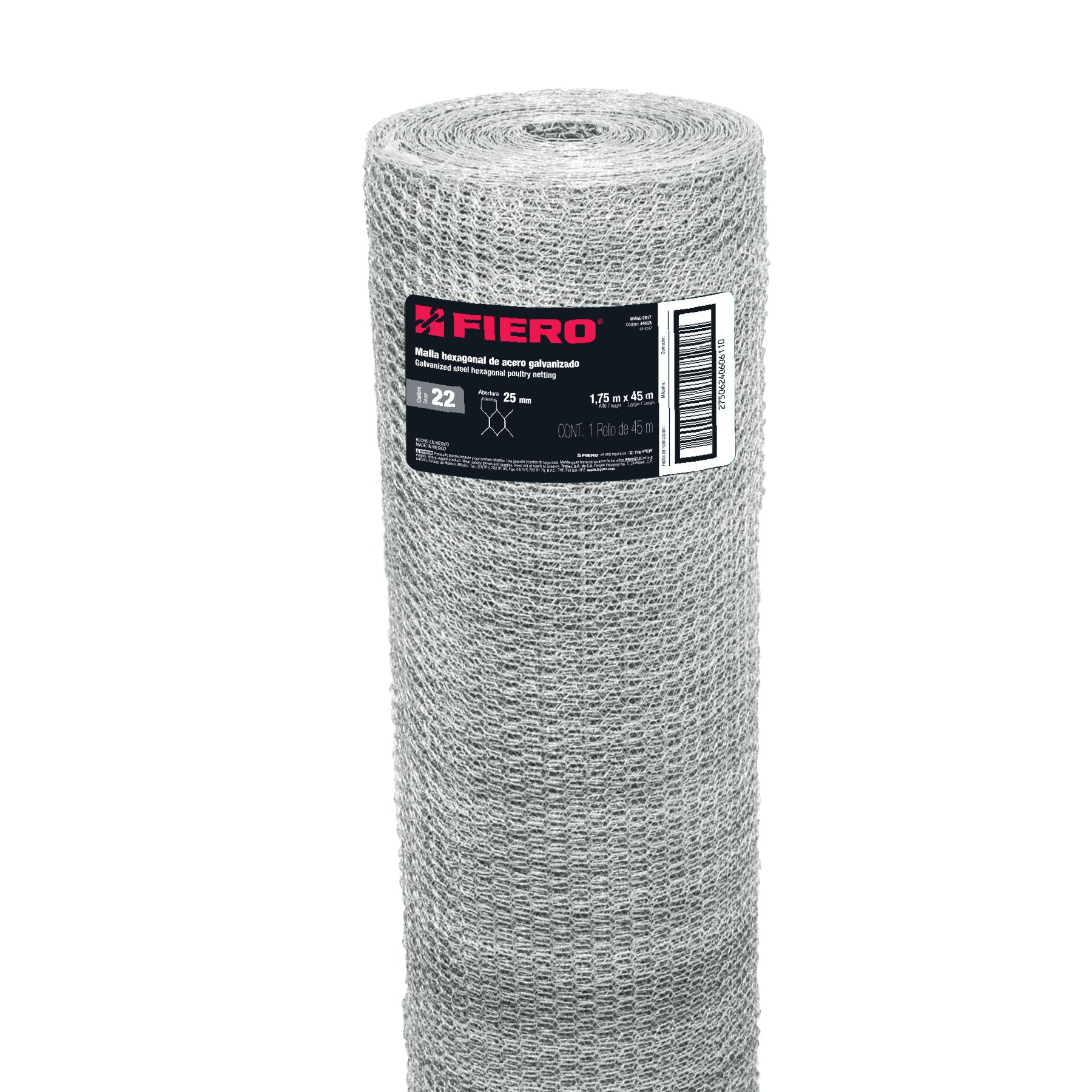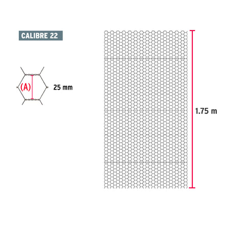 Rollo malla hexagonal cal.22, 1.5x 45m, abertura 25mm, 20kg