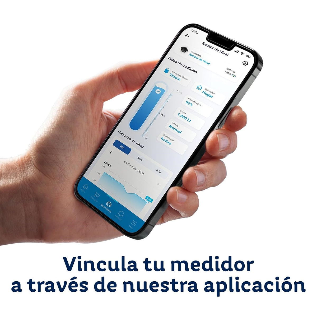 El Medidor de nivel Rotoplas con tecnología ultrasónica es un dispositivo de alta precisión diseñado para medir el nivel de agua en tu Tinaco, Cisterna o Tanque.
