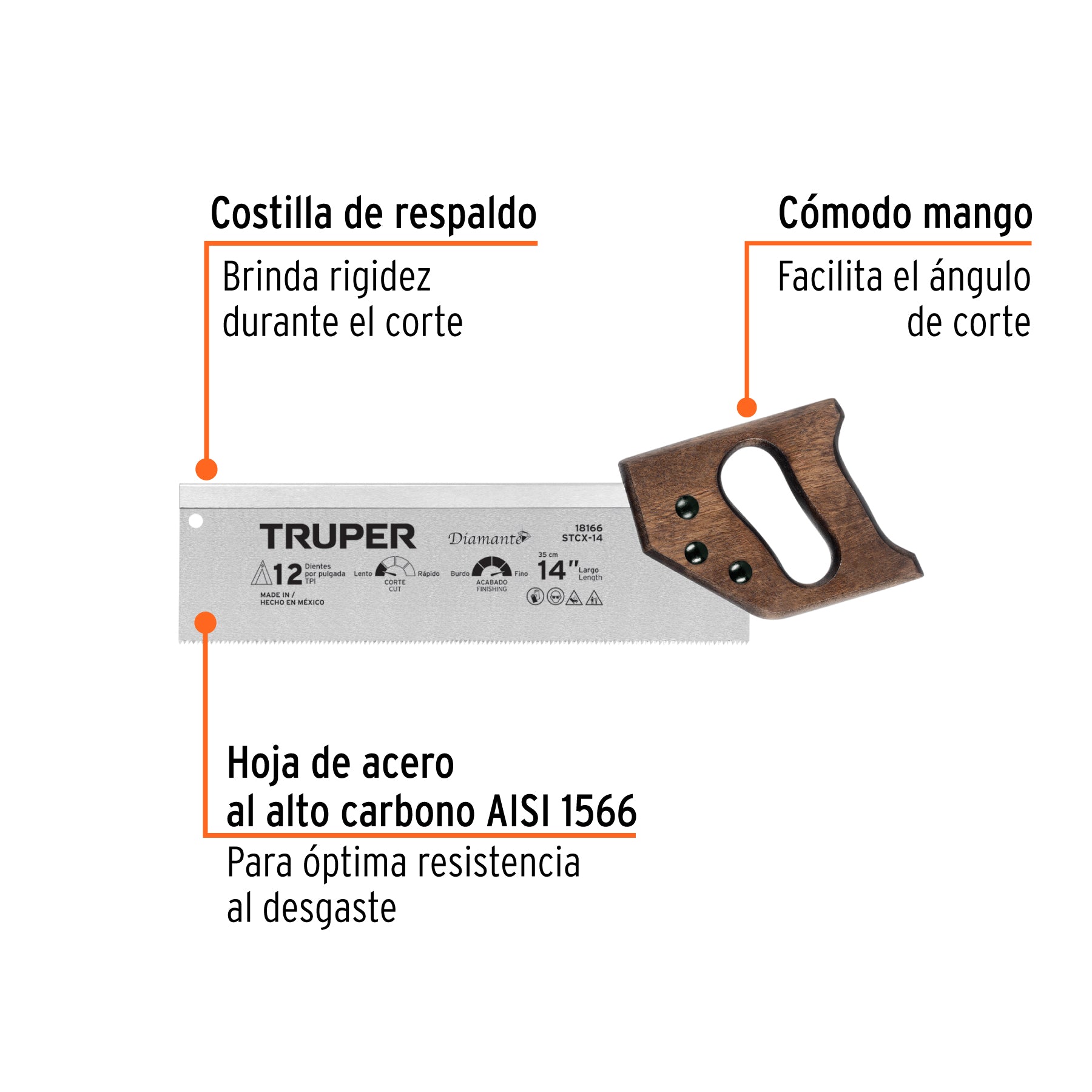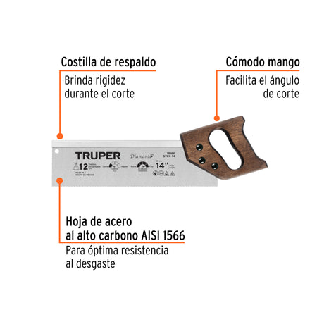Serrucho de costilla 14' Diamante, 12 DPP, TRUPER