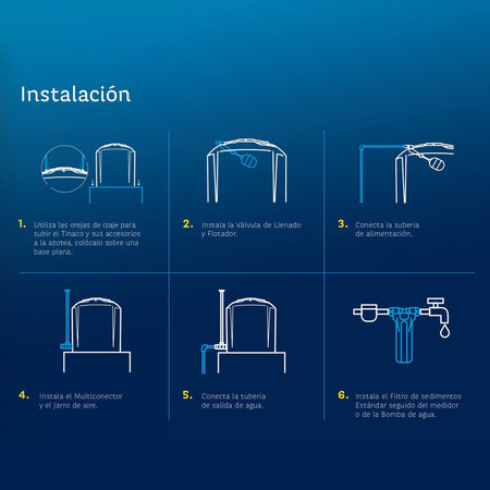 1. Utiliza las orejas de izaje para subir el Tinaco y sus accesorios a la azotea, colócalo sobre una base plana