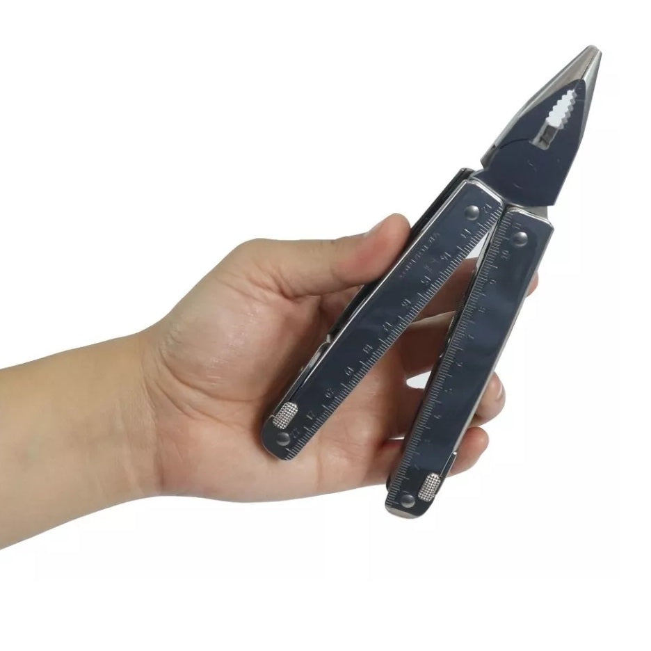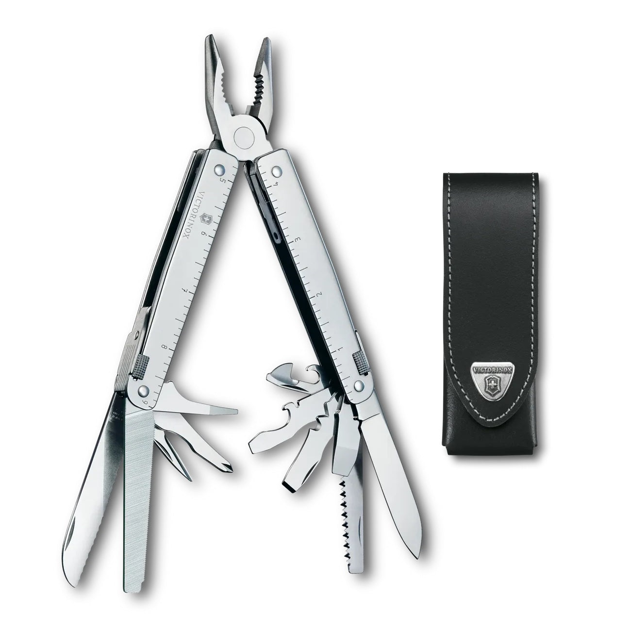 Toda la funcionalidad de su caja de herramientas compactada de forma ligera y para llevar en el bolsillo. Haga de la Swiss Tool su solución de un solo paso para llevar a cabo cualquier tarea rápidamente. En el hogar, en la oficina o al explorar los paisajes marítimos o terrestres de la naturaleza, esta es su compañera compacta para llevar a su lado. Con no menos de 26 funciones integradas, se va a preguntar cómo sobrevivía sin ella.